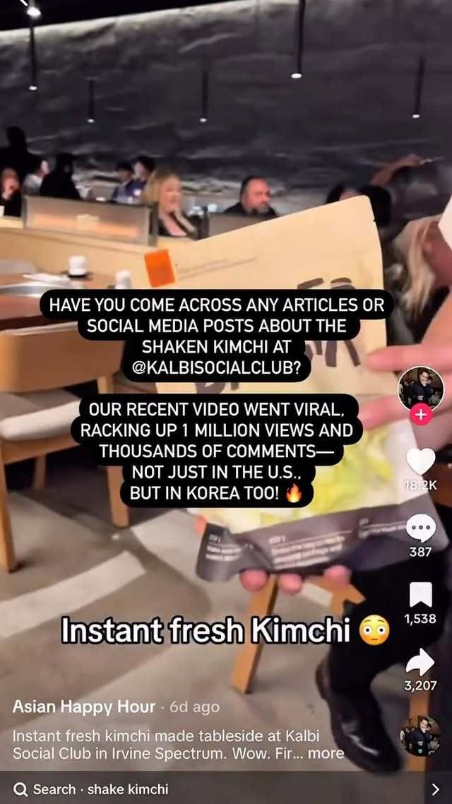 두 번째는 콘텐츠성, 특히 Z세대의 눈높이에 맞는 비주얼과 재미예요. 미국 Z세대는 식품을 선택할 때 “SNS에 올릴 만한가?”를 생각합니다. 틱톡에서 유행하는 챌린지, 유튜브 먹방, 인스타그램 감성 피드… 식품이 그 자체로 ‘밈(Meme)’이 되고 소비의 이유가 되는 시대인데, 한식은 이 재미 요소를 가지고 있죠. 아래 ‘1분 김치’도 흥미롭지 않나요?